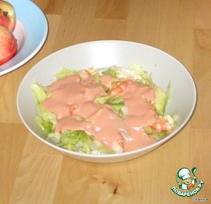 полить розовым соусом (розовый соус: майонез+кетчуп в соотношении 50:50)
