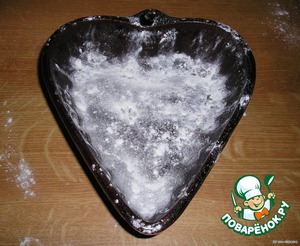 Подготовьте форму (формы) для выпечки. Для этого её необходимо смазать маслом и посыпать мукой. Если этого не сделать, то вынуть корж после выпечки будет очень затруднительно.