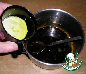 В остывший, полученный нами сироп влейте подсолнечное масло и йогурт.