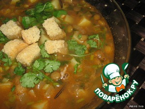 Рецепт «Густой томатный суп с чечевицей и кабачками»: