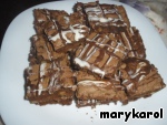 Форму застелить бумагой для выпечки, выложить смесь ровным слоем ( форма 20на 20)и выпекать около 20 мин.Остудить печенье и нарезать квадратиками, посыпать сахарной пудрой.