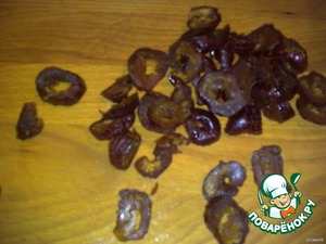 Для начинки финики без косточек нарезать произвольными кусочками.
