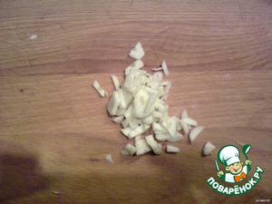 Измельчить чеснок и добавить в фарш. Также фарш посолить, поперчить по вкусу, добавить специи.