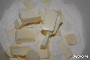 Добавить к тесту ванильный сахар,сахарный песок, желток, орехи с шоколадом.Тесто вымесить и положить в холодильник на 1 час.