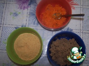 Печень, морковку отвариваем, луковичку поджариваем. Затем морковку, печень и крекер измельчаем
