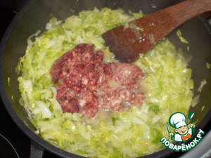 Потушить капусту почти до готовности и отцедить лишнюю жидкость. -
