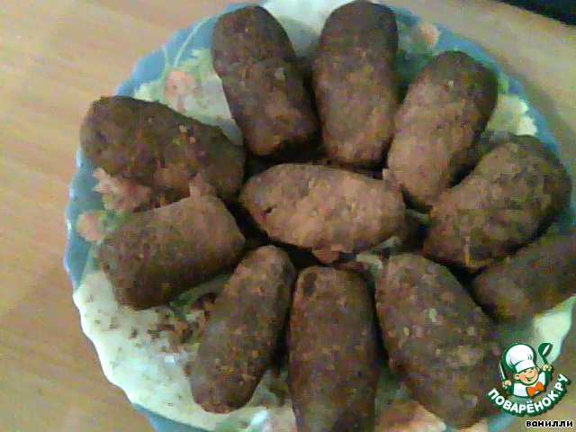 Измельчаем печенье в крошку (мясорубкой, кухонным комбайном).
