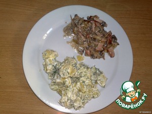 Уже надоели продукты, которые мы ели зимой, но ещe есть не всe, что можно есть летом... относительно быстрое блюдо, просто, чтобы потешить себя :)