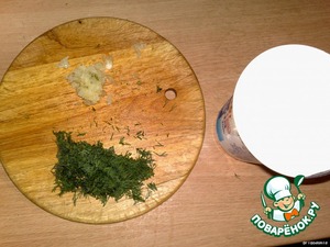 Чеснок – давим на чесночнице, укроп – мелко режeм.