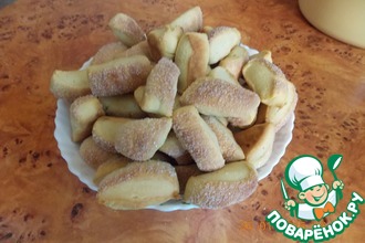 Выложить будущие сухарики на противень и поставить в духовку дожариваться еще минут на 15-20, достать и перевернуть, чтобы подрумянились с другой стороны.