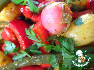 Отличный вариант для пикника - заранее отварные и маринованые овощи просто выкладываются на решетку гриля и обжариваются. Благодаря маринаду - получаются ароматные, с пикантным вкусом. Это, своего рода и гарнир и горячий салат одновременно. Можно приготовить так же и в духовке.