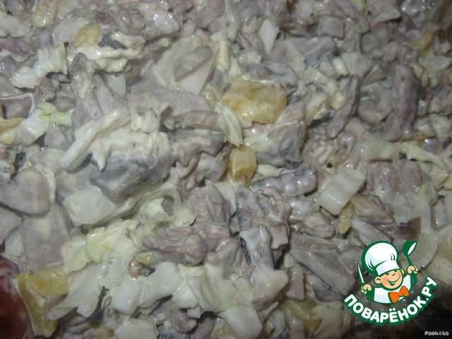 Вкусный салатик с сладковатой ноткой, сочный, нежный и в тоже время сытный. Рецепт из местного кафе. Название менять не стала... )))Посвящается всем нам. )))