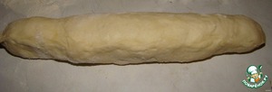 Я взяла достаточно большой кусок теста.(Примерно как на три пирога).И растянула его в овал..Причем чем длиннее тем интересней получается.Выкладываем в середину начинку -