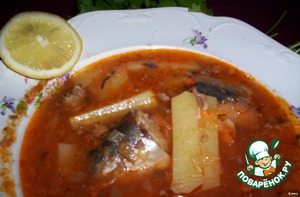 - добавить рыбные консервы, довести до кипения (варить до готовности картофеля)