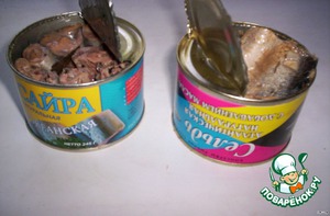 - Рыба (Консервы рыбные: сайра и сельдь) — 2 бан.