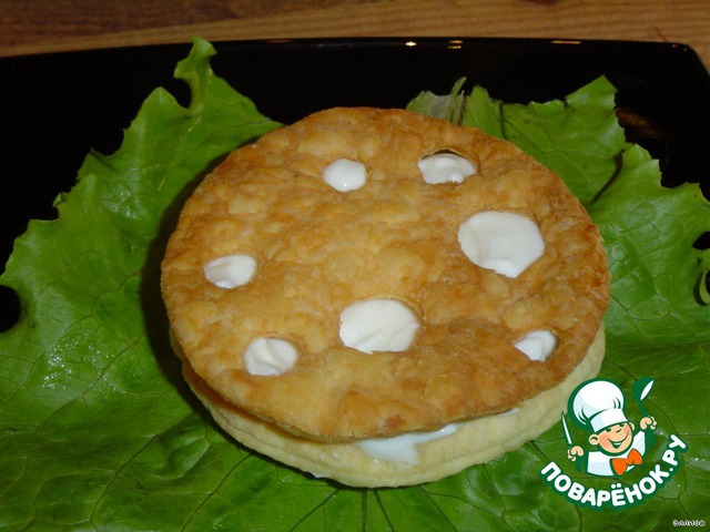 Раскатываем тесто и круглой формой вырезаем два одинаковых кружочка. В одном из них произвольно вырезаем несколько кружочков, имитируя дырочки в сыре.