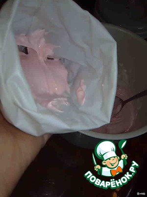 3. Взбитую белковую массу ложкой или лопаточкой перекладываем в кондитерский мешок.