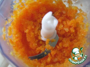 Отварную морковь измельчим в блендере.