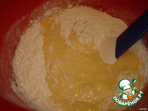 Добавляем порциями муку до тех пор пока тесто не станет довольно густым