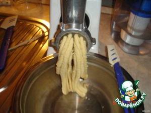 Из теста пропущенного через мясорубку формируем небольшие клубочки (величиной с ранетку) и раскладываем на противень (на пекарскую бумагу или силиконовый коврик)