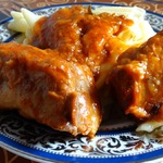 Триестинская разновидность (с австрийскими корнями) широко всем известного блюда под названием гуляш. Отличается от другого известного в нашем регионе гуляша унгерийского тем, что это блюдо не является густым супом с плавающими в нeм мясом и овощами, который подают в глубоких тарелках и в комплекте со столовыми ложками. Очень простое повседневное блюдо... которое является наглядным доказательством того общеизвестного факта, что итальянские женщины никогда не имели привычку вкалывать, как папа Карло, предпочитая проводить свои дни на кухне в окружении многочисленных отпрысков, пока их благоверные супруги работают за десятерых... :-D