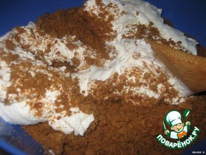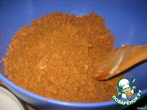 покрошить бисквитные коржи, соединить их с маслом и орехами