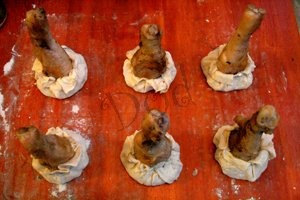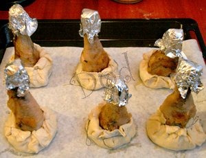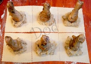 Голени кур с начинкой из картофеля и грибов в мешочках из слоеного теста