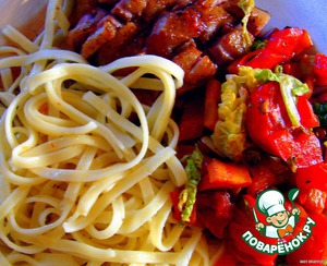Рецепт «Утиная грудка с яичной лапшой и овощами»: