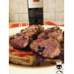 Достать утиные грудки из духовки и тонко нарезать острым ножом. Мясо должно быть розовым, но не сырым. -