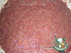 Печень, морковь и лук пропустить через мясорубку или измельчить блендером.