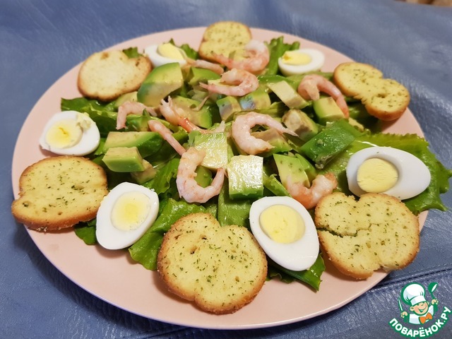 Рецепт «Салат из авокадо и креветок с яйцами»: