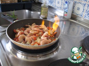 Рецепт «Креветки фламбе в сливочном соусе»: