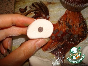 можно прикрепить "реснички" из вот таких сахарно-шоколадных штучек