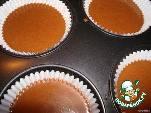 Готовое тесто разлить в формочки для кексов,оставляя примерно 1см