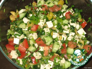 Приготовила салатик из оставшихся свежих овощей и кусочка домашней брынзы – получилось очень свежо и пикантно.
