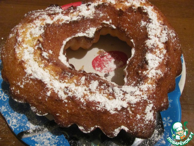 Достаем готовый кекс, переворачиваем его на блюдо.