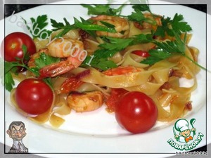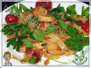 • Нам для приготовления сего понадобится креветки, паста, таиландский соус чили , чеснок, маленькие помидорчики,