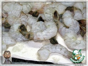 • Креветки в зависимости от способа хранения, довести до приемлемого в пищу состояния, если нужно разморозить, помыть, и почистить,