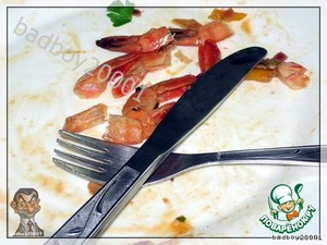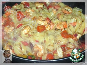 Перемешивая иногда соус, креветки готовятся быстро, и варим до состояния альдэнте пасты,