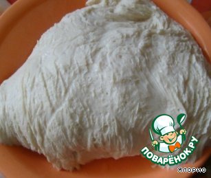В подогретом молоке разводим сахар, соль, сметану, масло, дрожжи, яйца. Вводим постепенно муку. Тесто должно быть достаточно плотным. Ставим его в теплое место, оно подходит два раза - подбиваем. Тесто должно получиться эластичным, мягким.