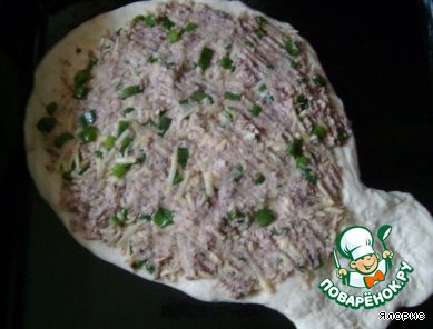 Делаем из теста основу пирога и выкладываем начинку.