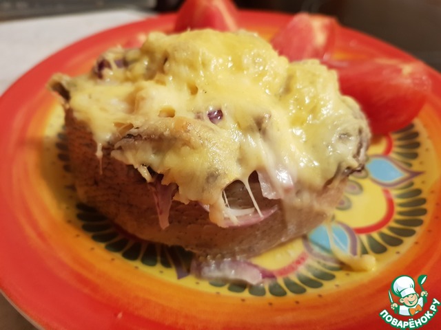 Запеченный судак в картофеле под сметанным соусом с грибами.