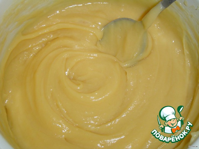 Прежде всего готовим тесто для эклеров. Для этого в воду добавляем масло, сахар, соль и доводим до кипения. Отставляем и добавляем муку, тщательно перемешивая. Даем смеси немного остыть, а потом добавляем по одному яйцу, также хорошо перемешивая.