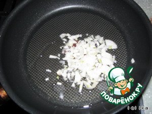 Обжарить мелко нарезанный лук до прозрачности в небольшом количестве растительного масла
