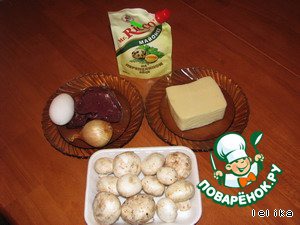 Ингредиенты для «Печеночные рулетики с шампиньонами»: