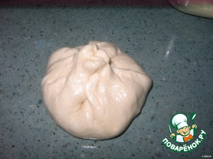 Собираем мешочек из теста. Переворачиваем и, опять же, руками приминаем, создавая лепешку!