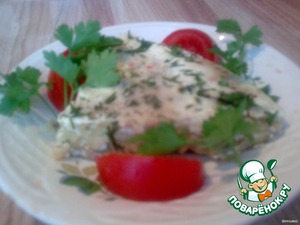 Разрезала ее на порции и подала с зеленью и помидорами.