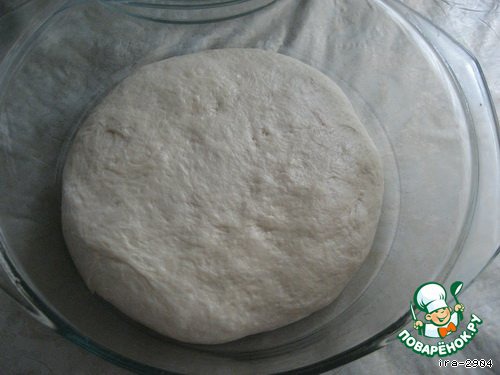 Тесто довольно быстро поднимается, я чуть не упустила, оно уже норовило выползти из тары. На фото я уже бесцеремонно опустила в него ладошку.