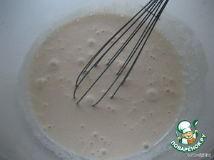 Добавляем вначале 2 стакана просеянной муки, вымешиваем, чтобы не было комков.