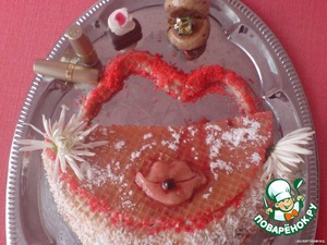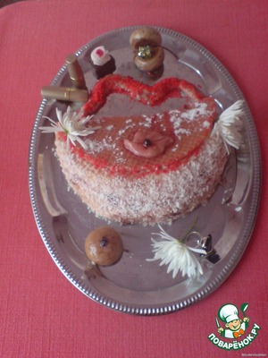 "Косметика в косметичке нашей" может быть любая, из конфет можно сделать помадки, я из пряников тоже добавила несколько элементов. Но а так как делала в праздничные дни и тортик готовился на скорую руку для подружки, я использовала для украшения цветы. -